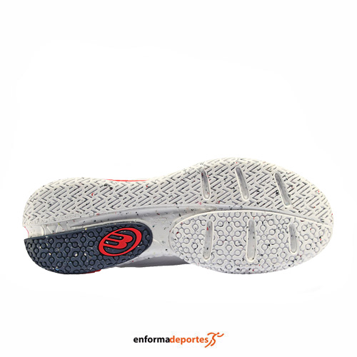 Zapatilla hombre BULLPADEL COMFORT PRO, confeccionada en tejido especial «tricot» ligero, que aporta transpiración y flexibilidad, con una nueva suela categorizada dentro del concepto de patín híbrido, se trata de un modelo perfecto para usarlo de forma intensiva en jugadores de alto nivel, puntera de goma inyectada sin costuras con una alta resistencia a la abrasión, canales transversales en la suela que favorecen la flexión natural del pie durante el juego y el estabilizador trasero, que facilita la sujeción del pie en los apoyos laterales y ayuda a prevenir torceduras.