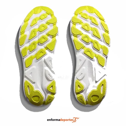 Zapatilla mujer HOKA CLIFTON 9, de pisada neutra, indicadas para medias y largas distancias, con empeine textil de punto técnico transpirable ofrece un ajuste ceñido y más adaptado al pie para unas sensaciones más agradables, con mediasuela para hacerla 3 mm. más alta, con diseño y silueta sin costuras que reduce las rozaduras y fricciones que pueden generar la aparición de ampollas, mediasuela Soft EVA extra suave y con un 30 % más amortiguación que la EVA tradicional. Su diseño Meta-Rocker en fase inicial, con efecto balancín, proporciona movimientos fluidos que incrementan el dinamismo de la carrera y suela de caucho Durabrasion Rubber™ colocado de forma estratégica para más tracción y durabilidad. El diseño Full Ground Contact ofrede flexibilidad y una suave transición talón-puntera.