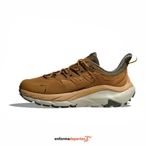 Zapatilla hombre HOKA KAHA 2 GTX, confeccionada en su parte superior con empeine de piel nubuck, con revestimiento impermeable de Gore-TEX, resistente y cómodo, entresuela de CMEVA de doble densidad, con estructura HUBBLE y amplia cola de golondrina en el talón y cola de milano, para adaptarse perfectamente a los desniveles del terreno, tanto en subida como en bajada, con suela con orientación invertida Vibram Megagrip de 5 mm, para un máximo agarre en cualquier tipo de superficie, y ranuras flexibles estratégicas que te permitirán moverte con mayor libertad, con cuello y lengüeta acolchados y alargado que ofrece protección y comodidad al tobillo y tendón de Aquiles, sistema de cordones con ojales dobles en las solapas integrados en la entresuela y ganchos metálicos en la parte superior para personalizar mejor el ajuste y mantener el pie siempre estable dentro del zapato, con puntera y zona del talón reforzadas para una mayor estabilidad y resistencia a la abrasión y plantilla extraíble integrada en la estructura.