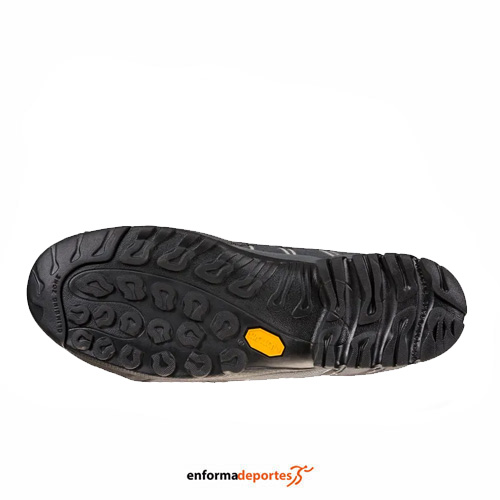 Zapatilla hombre LA SPORTIVA HYPER GTX, confeccionada en su parte superior de ante + tirante en PU piel alrededor con refuerzos en piel, con forma ergonomica con construcción modular, con membrana transpirable e impermeable Gore-tex Extended Comfort, con media suela MEMlex EVA a compresión con cojín blando en EVA inyectada+ plataforma “Rock Guard” extra densidad + inserción en TPU posterior anti-torsión y estabilizante y suela Vibram® Idrogrip con Impact Brake System + zona de escalada en punta.