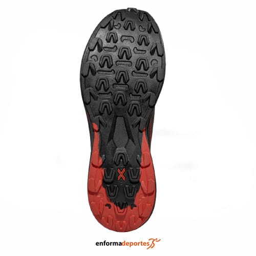 Zapatilla hombre LA SPORTIVA PRODIGIO, con upper de alta transpiración, con tecnología X Flow de alta amortiguación, con puntera reforzada, suela de doble componente Frixion® Red, plantilla Ortholite® Hybrid Mountain Running® Ergonomic 4 mm, rocker progresivo y drop de 6mm.