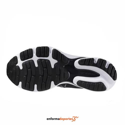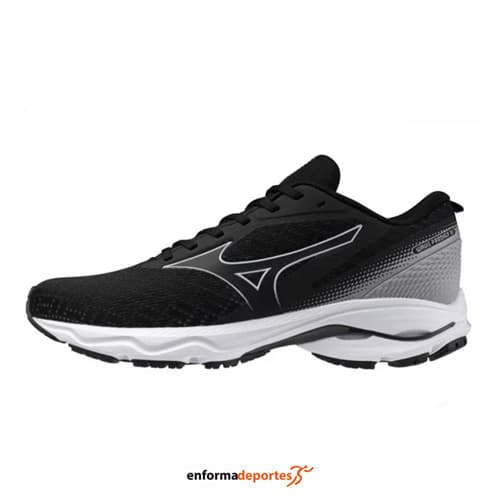 Zapatilla hombre MIZUNO WAVE PRODIGY 6, confeccionada en su parte exterior con upper mejorado con un nuevo mesh transpirable de dos capas y talón reforzado con un tejido más tupido que sujeta mejor el pie, con cierre con cordones, con forro de la plantilla interior, con plataforma Wave en TPU (Termopoliuretano), amortiguación y estabilidad y drop 12mm.
