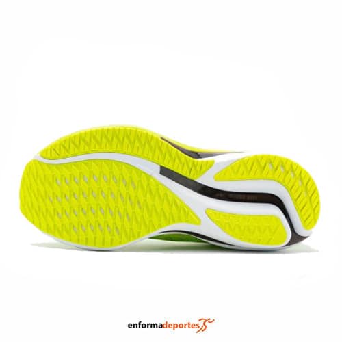 Zapatilla hombre MIZUNO WAVE RIDER 28, confeccionada en su parte exterior con tejido AirMesh tipo Jacquard, sin costuras, muy transpirable, con zona del talón elevada para proteger el tendón de Aquiles y proporcionar mayor confort, con cuña del talón confeccionada en material Mizuno Enerzy NXT, con más amortiguación y más reactivo, con zona central reforzada para dar mayor rigidez y por tanto más estabilidad a la zapatilla.