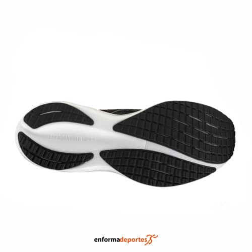 Zapatilla hombre MIZUNO WAVE RIDER 29, ideal para la práctica de running en asfalto, confeccionada en tejido y material reciclado, con mediasuela Enerzy NXT infusionada con nitrógeno, que ofrece una pisada más suave, reactiva y fluida, con grosor de mediasuela incrementado en +2 mm, placa Wave vegetal hecha con Elastollan® N (a base de biomasa) y drop 10mm.