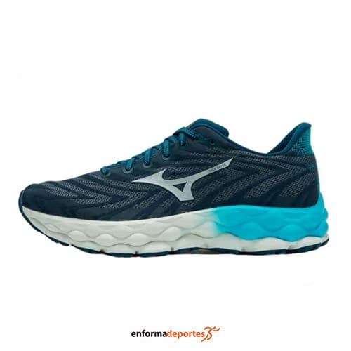 Zapatilla hombre MIZUNO WAVE SKY 8, ideales para correr con comodidad, con su parte superior de tela y forro interior textil para mayor transpirabilidad y ajuste gracias al cierre con cordones, con suela de goma que garantiza máxima tracción.