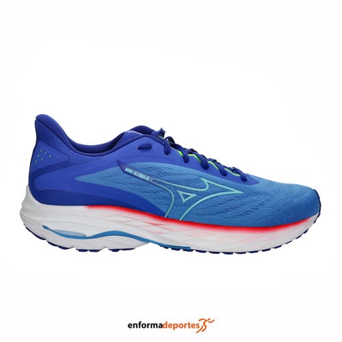 Zapatilla hombre MIZUNO WAVE ULTIMA 16, acolchadas y flexibles, proporcionando máxima comodidad, confeccionadas en su parte superior de malla de doble capa actualizada que se adapta mejor al pie y brinda una sensación constante de suavidad sin sacrificar la transpirabilidad que necesitas, con entresuela compuesta Enerzy y placa Wave que siguen y estabilizan la zancada, con inserciones de TPU impresas lateralmente que permiten la estabilidad del pie, lengüeta de malla acolchada parcialmente integrada en la estructura para un ajuste perfecto, con sistema de cordones con ojales reforzados en TPU y cordones planos para gestionar mejor la presión en la parte posterior del pie, cuello acolchado y ligeramente extendido en la espalda, plantilla interna extraíble, con suela con banda de rodadura de caucho de carbono, situada en las zonas de mayor fricción, y ranuras de flexión que favorecen una transición más suave del talón a la puntera y con detalles reflectantes.