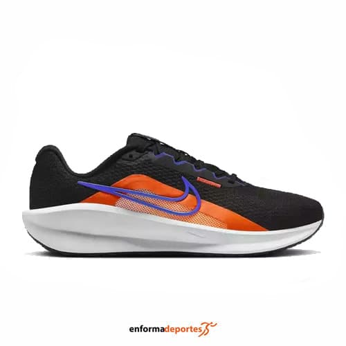 Zapatilla hombre NIKE DOWNSHIFTER 13, confeccionada en su parte superior de malla transpirable multicapa suave y cómoda al tacto para ofrecer una gran transpirabilidad, con banda de ajuste interior actualizada que rodea el mediopié para ofrecer más sujeción y firmeza. Con espuma reciclada flexible para ofrecer una pisada suave con amortiguación, sujeción y un diseño con materiales sostenibles, con suela exterior de goma verde duradera con, al menos, un 13 % de Nike Grind. Protección completa contra la abrasión desde la puntera hasta el talón y diseño con tacos para una mayor durabilidad y tracción.