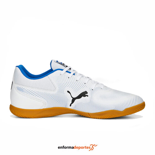 Zapatilla fútbol sala PUMA TRUCO III, de caña baja, con empeine de piel sintética duradera y forro suave que se adapta al pie, con cierre con cordones que proporciona mejor ajuste y suela de goma que proporciona agarre.