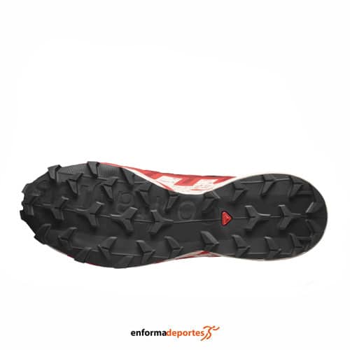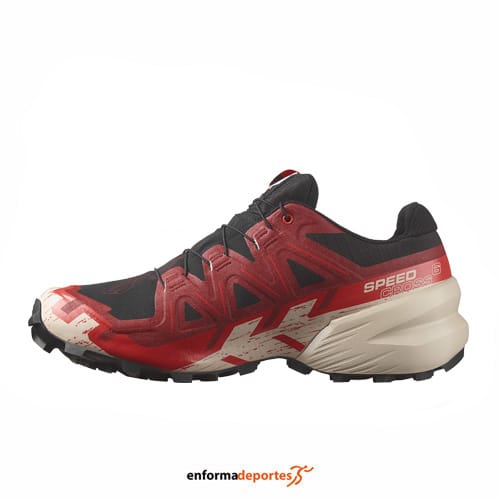 Zapatilla SALOMON SPEEDCROSS 6 GTX, con puntera y talón reforzados con tapones, con lengua ligeramente acolchada, suela interior extraíble, plantilla en espuma Ortholite más estabilidad y amortiguación, con cierre quicklace, sistema Sensifit que envuelve el pie en un ajuste preciso y seguro, con membrana GORE-TEX, impermeable y transpirable y con tecnología Energy Cell +, compuesto que favorece un importante retorno de energía oferciendo gran amortiguación y durabilidad.