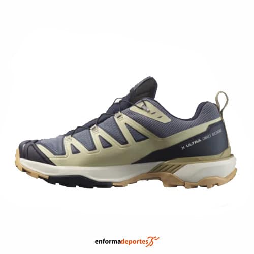 Zapatilla hombre SALOMON X ULTRA 360 EDGE GTX, ideal para la práctica de senderismo, de altura baja, con alta protección al pie, sujeción del pie estable, apta para terreno mixto, con membrana impermeable y transpirable Gore-Tex, con entresuela EnerguCell de espuma EVA de alto rendimiento que amortigua los impactos, con Advanced Chassis™ es un inserto moldeado integrado en la suela. Ofrece una sujeción lateral potente y una protección segura, además de una movilidad y flexibilidad óptimas, pala sintética con tecnología SensiFit, que ofrece gran sujecion, resistencia y protección, forro textil suave y transpirable, y suela All Terrain Contagrip® está diseñado para la más amplia variedad de superficies. Ofrece durabilidad y confianza sobre superficies húmedas, secas, duras o resbaladizas.