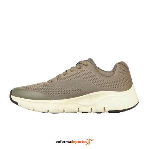Zapatilla hombre SKECHERS ARCH FIT, confeccionada en su parte superior de malla knit sin costuras, parte frontal con cordones y ojales bordados reforzados, ribete del cuello y el talón a juego o en contraste de colores, cuello y lengüeta acolchados, forro de tejido suave, sistema de plantilla Arch Fit con soporte en el arco plantar certificado por podólogos, plantilla de confort extraíble diseñada para mayor comodidad, diseño de media suela ligero con amortiguación y articulación flexible, suela con tracción flexible y talón de 3,8 cm.
