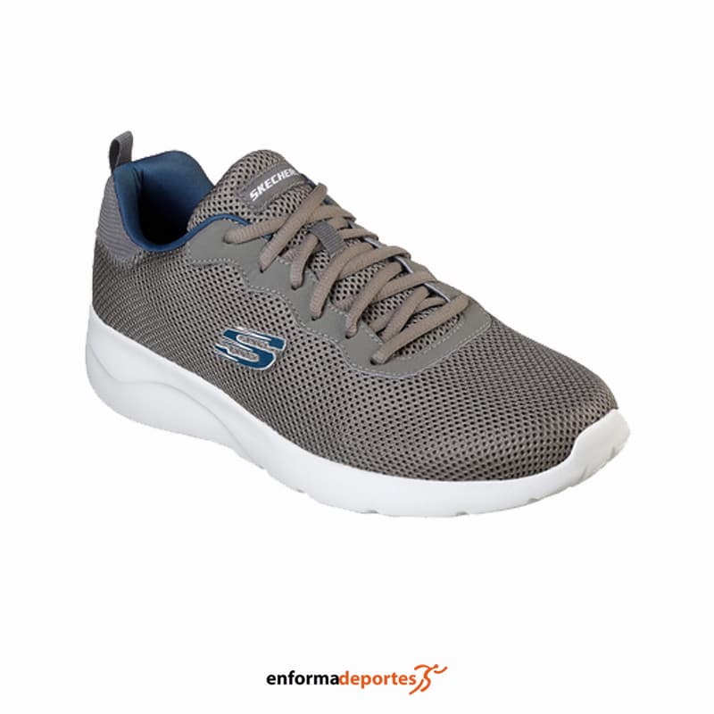 Zapatilla de hombre de la marca Skechers, confeccionada la parte suprior de malla con acabado jaspeado, cierre con cordones elásticos, media suela para absorcion de impactos, plantilla Memory Foam, cuello y lengüeta acolchados y suela flexible con tracción.