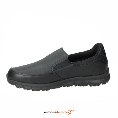Zapatilla hombre SKECHERS NAMPA-GROTON, confeccionada en su parte superior de piel sintética, con cómoda plantilla extraíble con amortiguación Skechers Memory Foam y suela con tracción antideslizante (SRC) y resistente.
