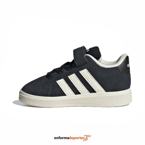 Zapatilla infantil ADIDAS GRAND COURT 00S EL I, fabricada con un empeine de ante suave, lengüeta acolchada, con forro interior textil y siela de goma resistente con gran tracción para mayor seguridad.
