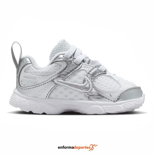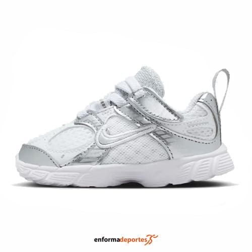 Zapatilla infantil NIKE V5, fabricada en su parte superior de malla con revestimientos de cuero sintético es transpirable y duradera, con forro suave en el cuello y la entresuela de espuma se combinan para ofrecer comodidad durante todo el día, con suela con ranuras inspiradas en los años 2000 añade una tracción excelente, con agujetas elásticas y presilla de agarre en el talón.