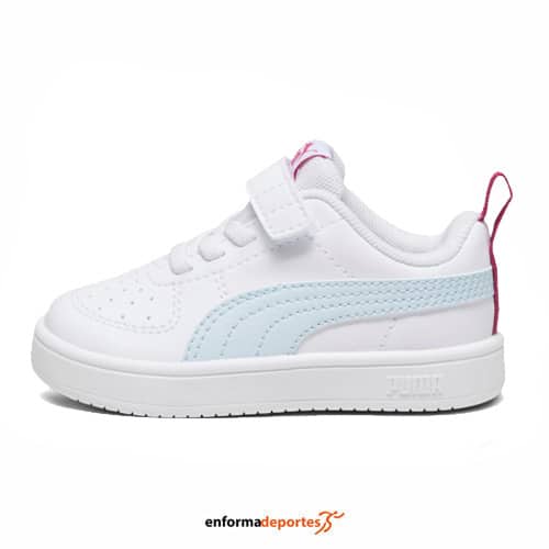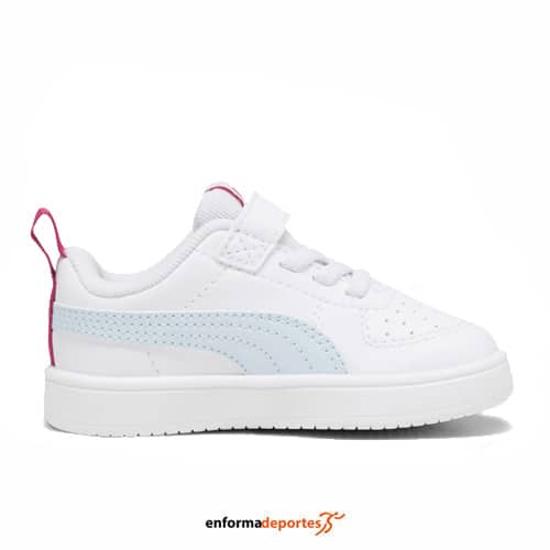 Zapatilla infantil PUMA RICKIE AC INF, confeccionada en su parte exterior piel, con cierre con cordones y velcro.