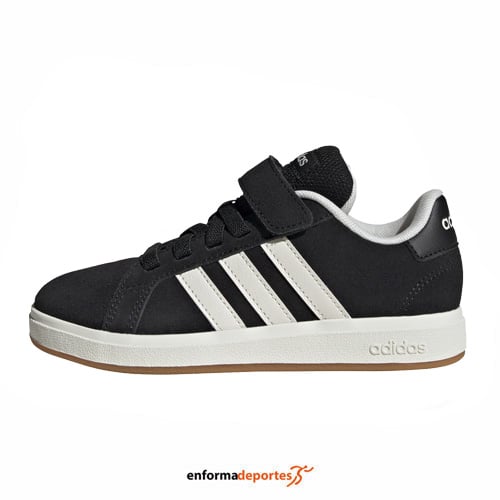 Zapatilla junior ADIDAS GRAND COURT 00S EL C, fabricada en su parte superior de ante suave se combina con un cierre elástico amplio y una tira en la parte superior para un ajuste seguro y cómodo, con lengüeta acolchada y suela de goma para garantizar mayor resistencia.