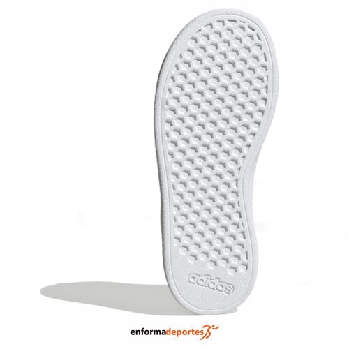 Zapatilla junior ADIDAS GRAND COURT 2.0 K, confeccionada en su parte superior de piel sintética, para mayor durabilidad, con forro textil, cierre con cordones para un ajuste personalizado y suela de goma para mayor agarre.
