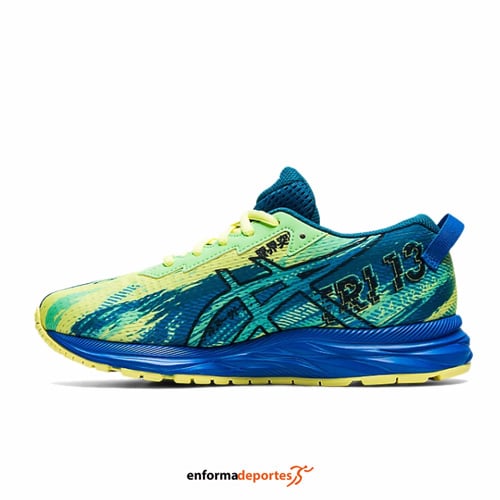 Zapatilla junior ASICS GEL-NOOSA TRI 13 GS, confeccionada en su parte superior con malla para aumentar el flujo de aire que ayuda a mantener los pies frescos, con entresuela de inyección de EVA, proporciona máxima comodidad y suela de goma cosida en la puntera para mayor durabilidad.