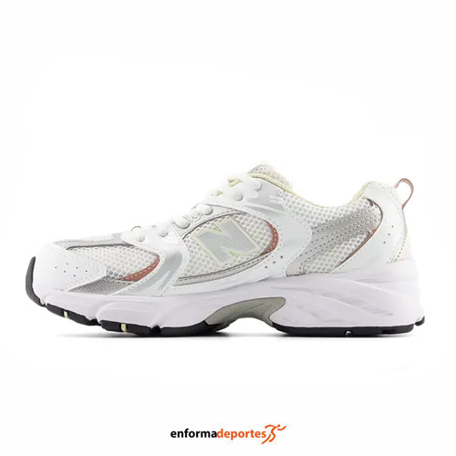 Zapatilla junior NEW BALANCE 530, confeccionada en su parte superopr de malla, con refuerzos de material sintético, que proporciona transpirabilida y durabilidad, con cierre de cordones para mayor ajuste y suela ABZORB.