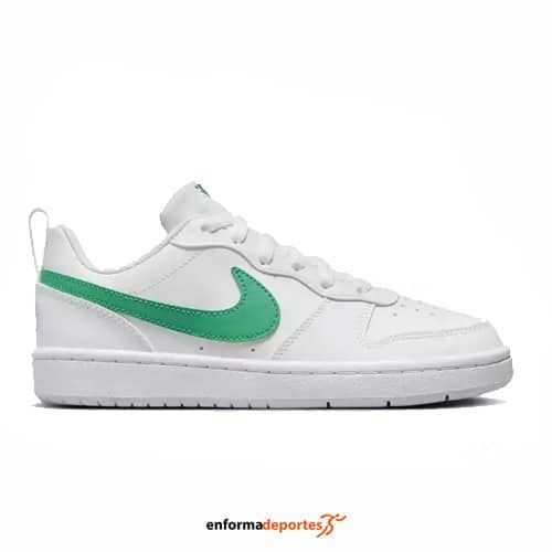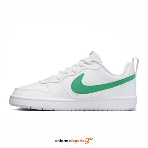 Zapatilla junior NIKE COURT BOROUGH LOW RECRAFT, fabricadas con una combinación de materiales reciclados en la parte superior de piel sintética y la suela exterior con doble costura, para conseguir un look clásico renovado, con puntera y el mediopié rediseñados ofrecen espacio adicional a los pies para correr, saltar y jugar más tiempo.