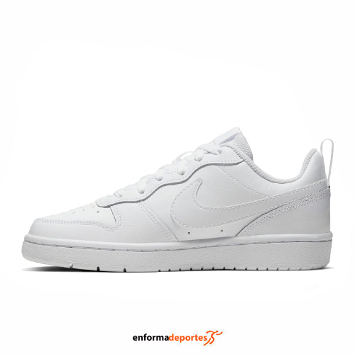 Zapatilla junior NIKE COURT BOROUGH LOW RECRAFT, fabricadas con una combinación de materiales reciclados en la parte superior de piel sintética y la suela exterior con doble costura, para conseguir un look clásico renovado, con puntera y el mediopié rediseñados ofrecen espacio adicional a los pies para correr, saltar y jugar más tiempo.