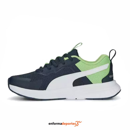 Zapatilla junior PUMA EVOLVE RUN MESH, confeccionada en su parte superior de malla con superposiciones sintéticas, con entresuela de EVA suave funciona con nuestra plantilla SOFTFOAM+ para brindar comodidad, amortiguación y elevación superiores dondequiera que lo lleven sus pies.
