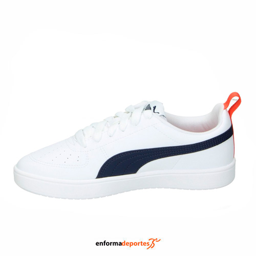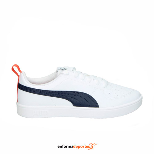 Zapatilla junior PUMA RICKIE, confeccionada en su parte superior de material sintético que brinda comodidad y es resistente, con lengüeta para mayor comodidad, sistema de cierre con cordones y suela de goma para mayor durabilidad y tracción sobre la superficie.