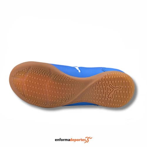 Zapatilla infantil junior TRUCO III PUMA, ideal para la práctica de futbol sala, con parte superior con material resistente y ligero para mayor durabilidad, de ajuste cómodo y seguro, con amortiguación ligera, con suela de goma antideslizante y cierre con cordones.