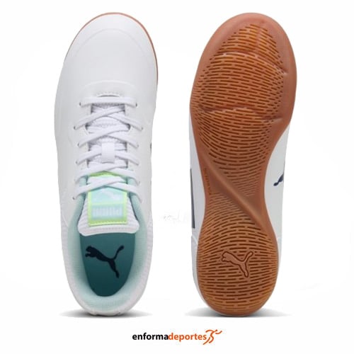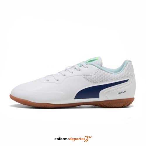 Zapatilla infantil junior TRUCO III PUMA, ideal para la práctica de futbol sala, con parte superior con material resistente y ligero para mayor durabilidad, de ajuste cómodo y seguro, con amortiguación ligera, con suela de goma antideslizante y cierre con cordones.
