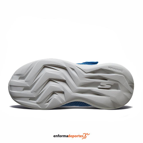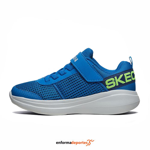 Zapatilla SKECHERS GO RUN FAST THARO, confeccionadas en su parte superior de malla transpirable, y una parte sintética, cierre con velcro y cordones elásticos. Media suela que proporciona máxima amortiguación y plantilla textil.