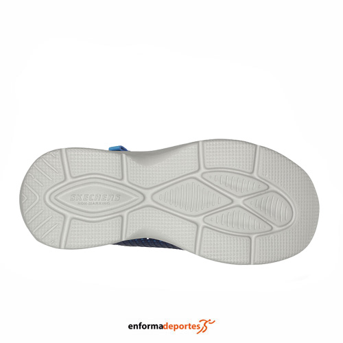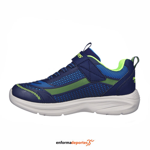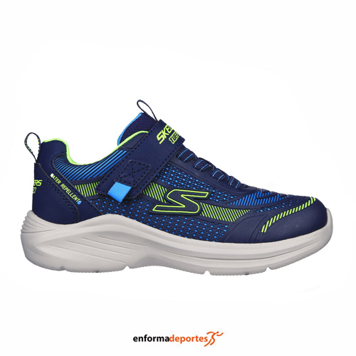 Zapatilla junior SKECHERS HYPER-BLITZ, confeccionada en su parte superior con tejido sintético impermeable, con cierre con cordones elásticos, con plantilla confort con amortiguación y media suela con absorción de impactos y suela flexible.