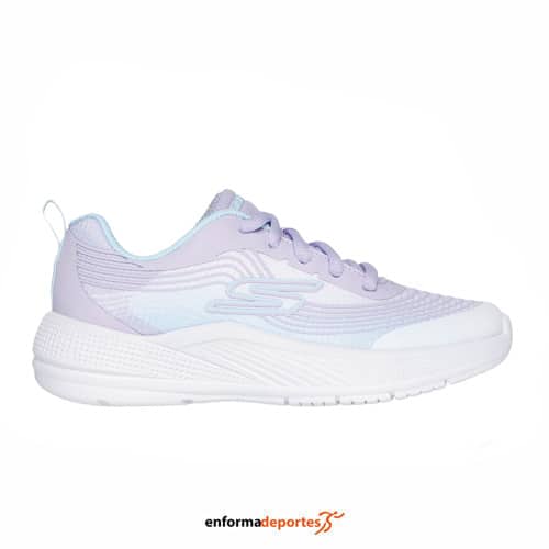 Zapatilla junior SKECHERS MICROSPEC ADVANCE, fabricada en su parte superior en malla y refuerzos intéticos, con una cómoda plantilla acolchada que proporciona proporciona comodidad, con cierre adaptable para un ajuste más personalizado, con cordones elásticos y correa ajustable y suela cómoda.