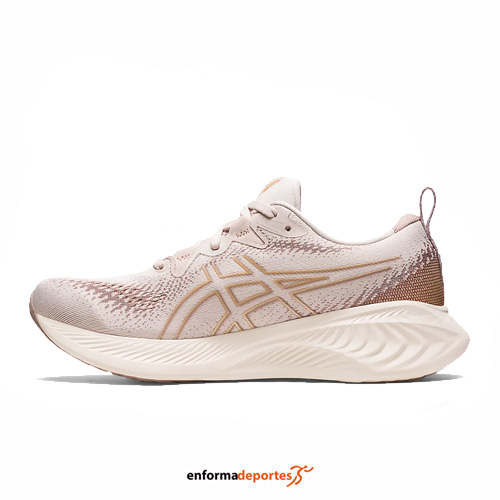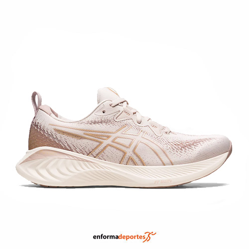 Zapatilla mujer ASICS GEL-CUMULUS 25, confeccionada en su empeine de malla jacquard, que proporciona mayor transpirabilidad y comodidad, con tecnología FF BLAST™ PLUS, amortiguación que proporciona una absorción de impactos ligera y un rebote con capacidad de respuesta, con tecnología PureGEL™ que proporciona una amortiguación ligera, con plantilla OrthoLite™ X-30, proporcionando comodidad en cada pisada, con suela de goma AHAR™ que mejora la durabilidad y detalles reflectantes, diseñados para mejorar tu visibilidad en condiciones de poca luz.