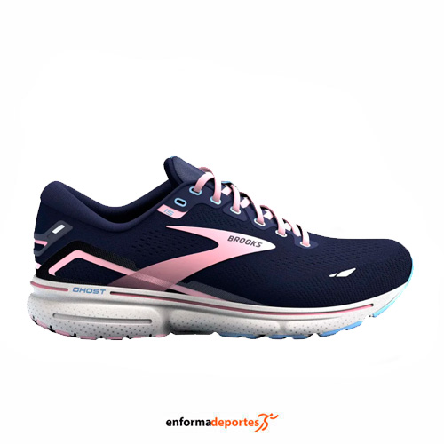 Zapatilla mujer BROOKS GHOST 15, confeccionadas en la parte superior de malla técnica Air Mesh, que garantiza comodidad y transpirabilidad con estampado 3D Fit, con amortiguación actualizada, con mediasuela incorpora la amortiguación DNA LOFT v2, más cómoda y ligera, con tecnología Segmented Crash Pad se combinan para un flujo sencillo entre el aterrizaje y el despegue del pie.