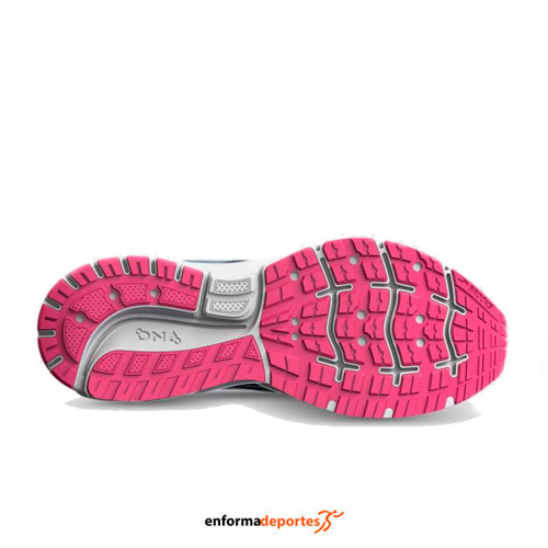 Zapatilla mujer BROOKS TRACE 2, confeccionada en su parte superior de malla técnica Air Mesh para mayor transpirabilidad, con tecnología DNA para mayor amortiguación, con talón reforzado y moldeado para mayor estabilidad y cierre con cordones para mayor ajuste.
