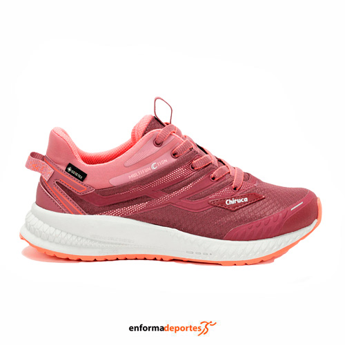 Zapatilla mujer CHIRUCA ARENAL 07 GTX, confeccionada en material textil, con malla mesh, para mayor transpirabilidad, con membrana forro Gore-Tex Extended Comfort, entresuela phylon expanso y suela de caucho Vibram® Chrono con compuesto Megagrip®.