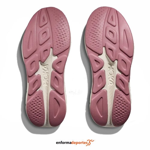Zapatilla mujer HOKA RINCON 4, de pisada neutra,  fabricada en su parte superior de tejido malla Jacquard técnico doble de una sola capa para mayor transpirabilidad, amortiguación baja, con lengüeta acolchada que permite calzarse la zapatilla con facilidad y comodidad, entresuela  de dos capas de EVA con compresión completa, que proporciona la amortiguación exclusiva de HOKA, con estructura Active Foot Frame™ centrada en la parte trasera del pie, MetaRocker™ suave y suela exterior de estructura podular de EVA vulcanizada.