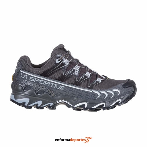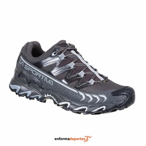 Zapatilla LA SPORTIVA ULTRA RAPTOR GTX, con upper en tejido Air-Mesh muy transpirable, con refuerzo de microfibra antiabrasión, con upper ensamblado sobre una plantilla de EVA comprimida, forro Mesh, inserción Easy In en piel PU, membrana impermeable GORE-TEX, composición del forro facilita el calzado y la estabilidad del talón, media suela de EVA inyectada, plantilla OrthoLite Mountain Running, suela FriXion White con IBS, puntera antigolpes integrada y drop: 9 mm.
