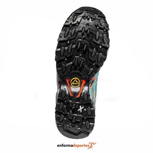 Zapatilla mujer LA SPORTIVA ULTRA RAPTOR II GTX, con membrana GORE-TEX Extended Comfort que permite la transpiración pero no deja entrar el agua, con talón estabilizador trasero permite un control perfecto en las travesías, con sistema de cierre con cordones que está integrado en la parte superior mediante lazos cosidos en el tejido elástico interno y con refuerzos de alta frecuencia en la malla externa: este sistema distribuye la tensión de los cordones por toda la parte superior y envuelve el pie de la mejor manera posible para un confort perfecto, con suela FriXion® White con un pronunciado talón Trail Bite para un mejor frenado en los descensos.