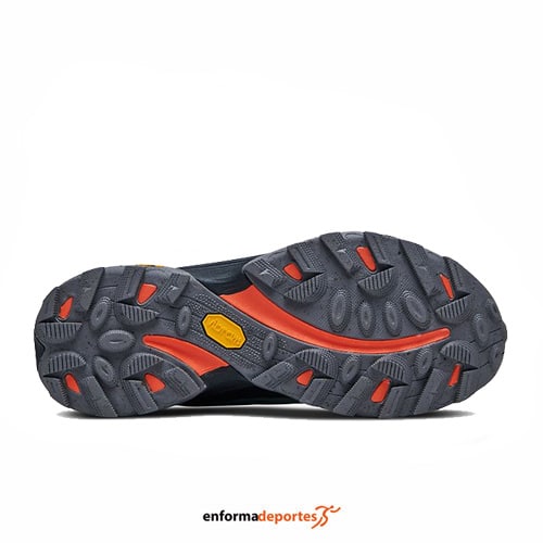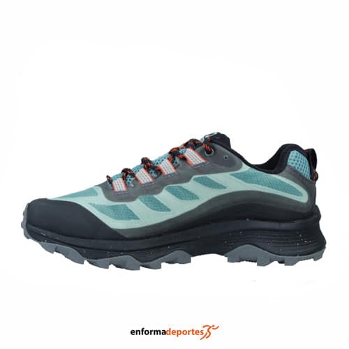 Zapatilla mujer MERRELL MOAB SPEED GTX, confeccionado en su parte superior de malla y TPU, con membrana impermeable GORE-TEX®, transpirabilidad excepcional y rendimiento impermeable, con cordones 100% reciclados, con cuello acolchado, puntera protectora, plantilla de espuma EVA con lámina superior 50% reciclada, PU extraíble plantilla de espuma, entresuela FloatPro Foam ™ para una pisada ligera duradera, suela Vibram® EcoDura es 30% de caucho reciclado y Vibram® Traction Lug.