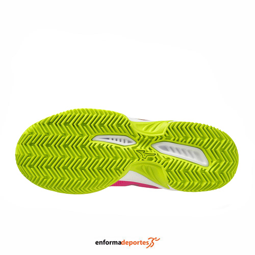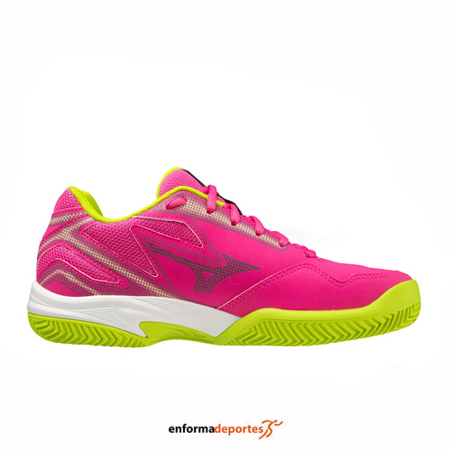 Zapatilla mujer MIZUNO BREAK SHOT 4 PADEL, fabricada en resistente micro PU y malla que aporta durabilidad, con collar interior bien acolchado que mejora la sensación y protege el tobillo, con amortiguación que reduce los impactos, con refuerzo en la puntera y suela con ranuras para mayor tracción.