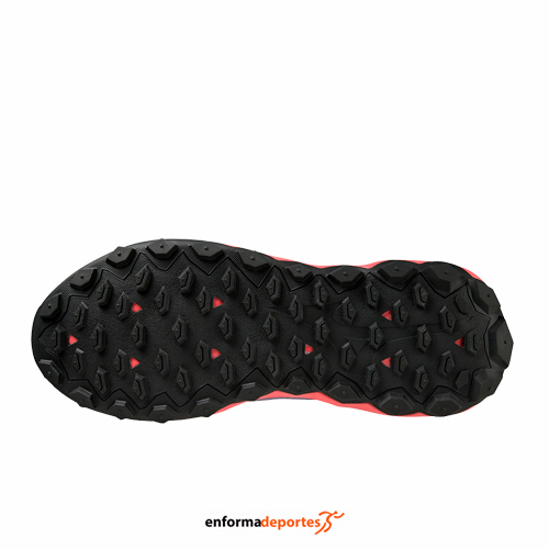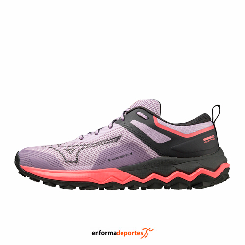 Zapatilla mujer MIZUNO EAVE IBUKI 4, ideal para corredores de peso medio, optimizada para brindar amortiguación, estabilidad y retorno de energía, con la nueva espuma MIZUNO ENERZY en la suela para una sensación más suave y un mayor retorno de energía al aterrizar en el talón. El diseño de la suela cuenta con caucho Wgrip para mejorar el agarre, especialmente en caminos de grava.