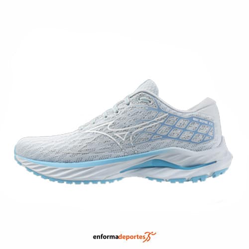 Zapatilla mujer MIZUNO WAVE INSPIRE 20, con tecnología MIZUNO WAVE para mayor estabilidad que evita que el arco del pie colapse, con forma anatómica de la placa que permite una transferencia suave del peso desde el contacto con el suelo hasta la propulsión hacia adelante, confeccionada en tejido Smooth Stretch permite carreras suaves, con ejuste cómodo y suave, con tecnología MIZUNO ENERZY FOAM en toda la entresuela ofrece una increíble amortiguación y retorno de energía.