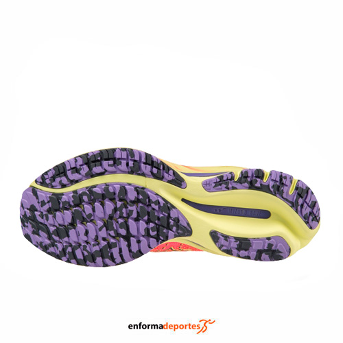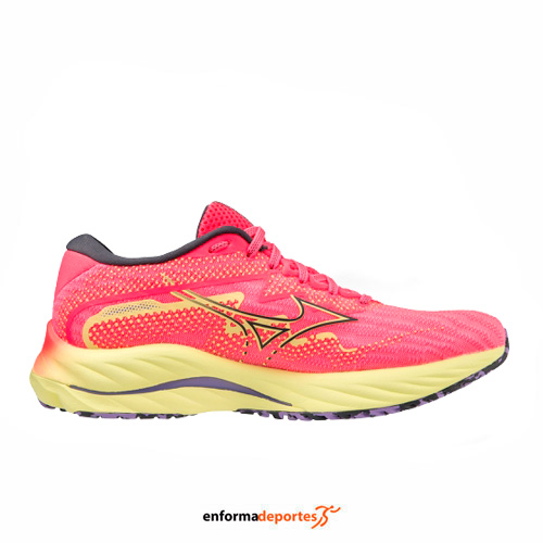 Zapatilla mujer MIZUNO WAVE RIDER 27, de pisada neutra, ideal para corredores de asfalto, fabricadas con combinación de amortiguación y estabilidad con una sensación de propulsión y soporte para una transición suave, con Mizuno Energy Foam, cargado en toda la entresuela que mejora la amortiguación y el retorno de energía, con estructura superior que envuelve suavemente el pie.