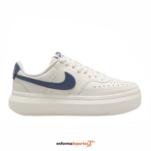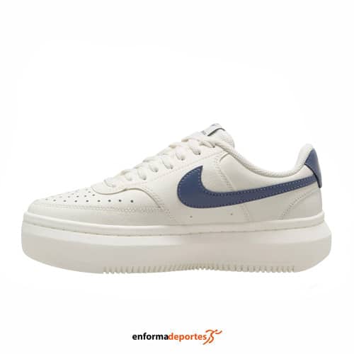Zapatilla mujer NIKE COURT VISION ALTA, fabricada en su parte superior de piel para añadir durabilidad y perforaciones en la puntera para crear una estética ligera, con mediasuela de espuma elevada y talón esculpido para una comodidad moderna, lengüeta ultraacolchada para proporcionar una suavidad extraordinaria, plataforma y cierre con cordones.