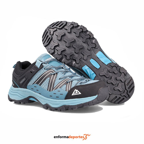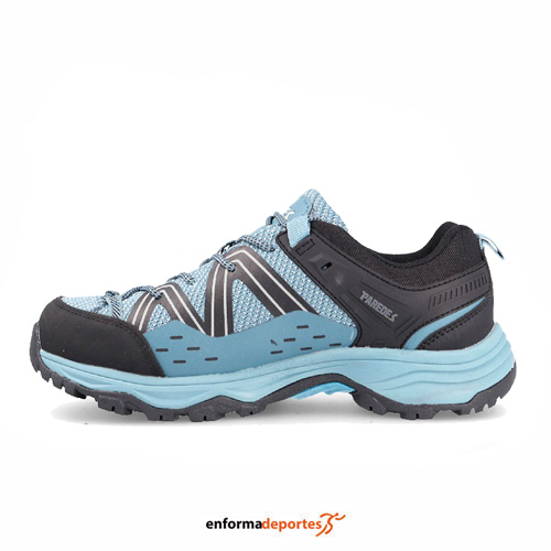 Zapatilla mujer PAREDES ENCINA, confeccionada en tejido exterior ligero y confortable, con tecnología 3DComfort, suela de triple densidad anti impactos, que aporta mayor agarre, estabilidad y antideslizamiento en los terrenos más adversos, y con membrana WaterProof alojada en el forro te permitirá mantener los pies secos durante tus rutas, ya que consigue una óptima protección frente al frío y regula la humedad de tus pies, con collarín y lengüeta acolchada para mayor comodidad, con refuerzos en la puntera y el talón, con pieza técnica de protección del tobillo en ambos lados, mediasuela de Phylon para una pisada cómoda y estable, ajuste con cierre con cordones y suela de caucho con excelente adherencia.