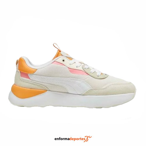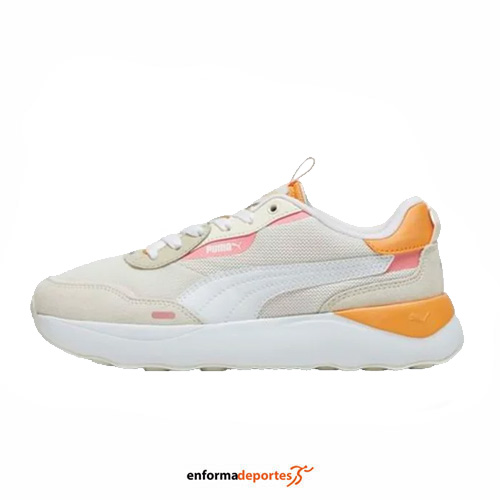 Zapatilla mujer PUMA RUNTAMED PLATFORM, una suela gruesa y robusta, fabricadas en su parte superior de malla con refuerzos en puntera y talón, con amortiguación superior, proporcionan una comodidad excepcional y absorben el impacto en cada paso, asegurando una sensación de suavidad y estabilidad durante todo el día.