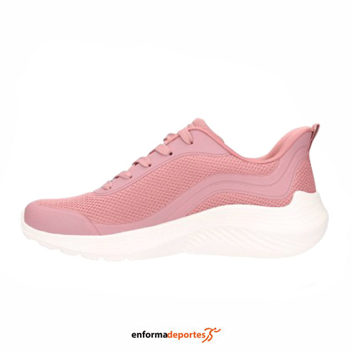 Zapatilla mujer SKECHERS BOBS SQUAD WAVES, confeccionada en su parte superior con malla, proporciona transpirabilidad y ligereza, con refuerzos en puntera, cierre con cordones para mayo ajuste y talón acolchado, con suela antideslizante.