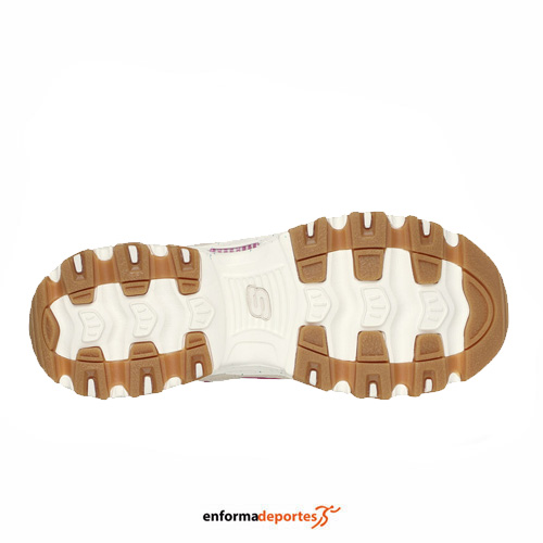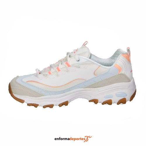 Zapatilla mujer SKECHERS D´LITES-BOLD VIEWS, confeccionada en su parte superior de malla y tejido sintético, con capas superpuestas de antes, con plantilla con amortiguación Skechers Air-Cooled Memory Foam®, media suela moteada con absorción de impactos y suela flexible con tracción.